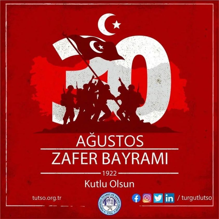 Turgutlu Ticaret ve Sanayi Odası Yönetim Kurulu Başkanı Faruk Aydın, 30 Ağustos Zafer Bayramının 100. yılı dolayısıyla mesaj yayınladı.