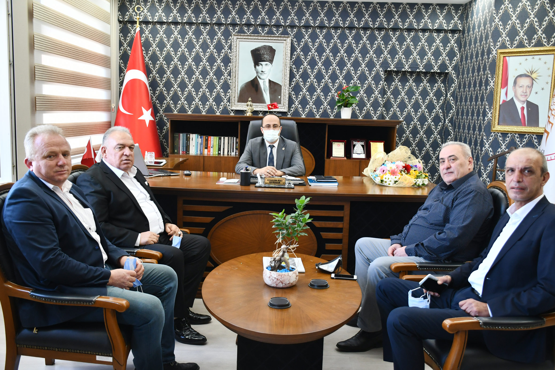 Başkan Aydın'ın ziyaretinde, TUTSO Yönetim Kurulu Başkan Yardımcısı Nazım Balyapan, Meclis üyesi Fevzi Canöz ile oda genel sekreteri Nevzat Avcı eşlik etti.
