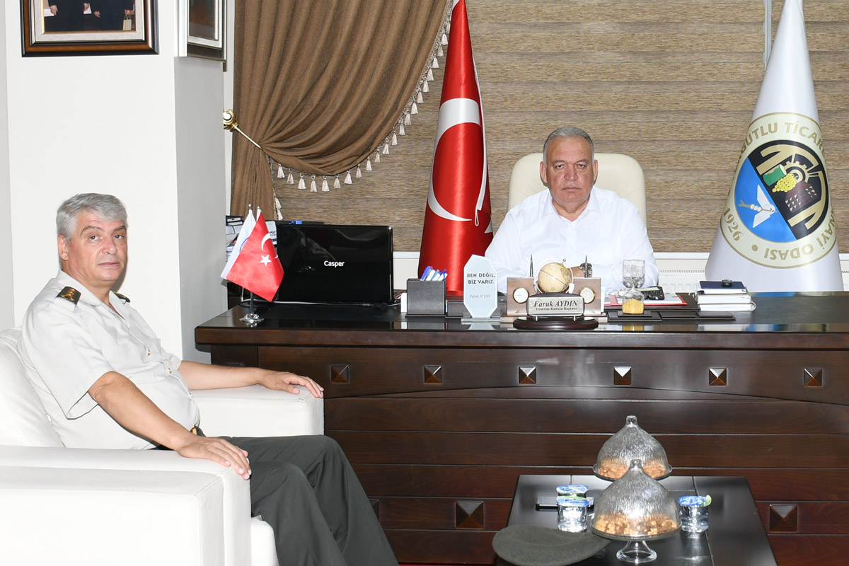 Retired Turgutlu District Garrison Commander Staff Colonel Kenan Peşternik visited Turgutlu Chamber of Commerce and Industry Chairman Faruk Aydin in his office as part of his farewell visits.