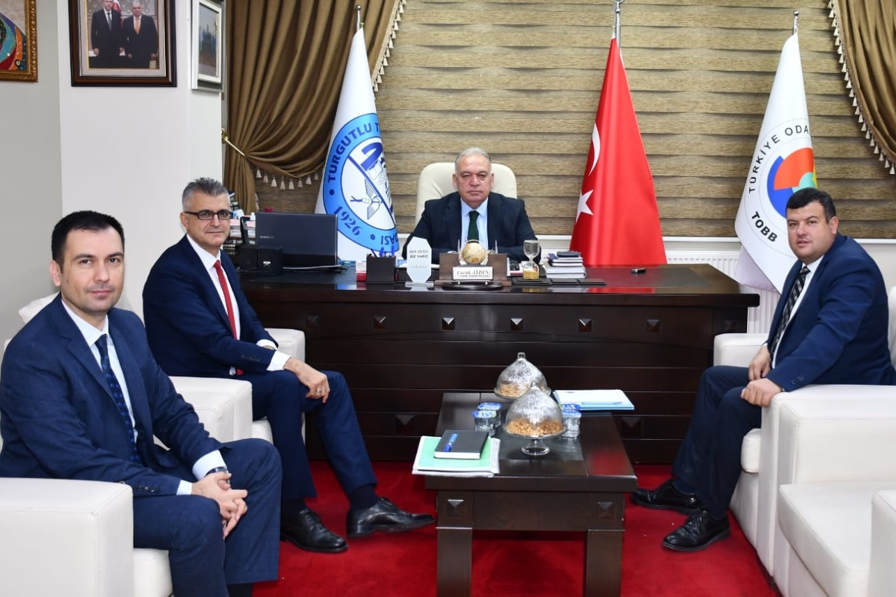 Anadolu Bankası Şube Müdürü Bülent Çoban, Şube Müdür Yardımcısı İşletmen Bankacılığı yetkilisi İbrahim Caner Ak, Müdür Yardımcısı Tarım Bankacılığı yetkilisi Hakkı Gürbüz, Turgutlu Ticaret ve Sanayi Odası (TUTSO) Yönetim Kurulu Başkanı Faruk Aydın'ı ziyaret etti.
