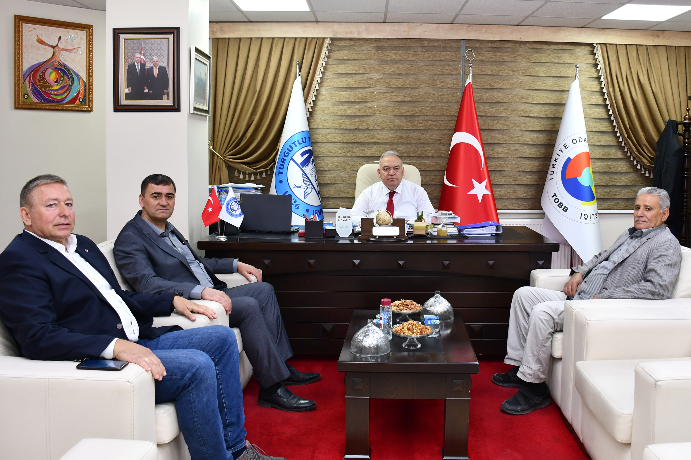 S.S. 118 Nolu Turgutlu Birleşik Motorlu Taşıyıcılar Kooperatifi Yönetim kurulu Başkanı Bayram Çığın ile Aziz Dizman, Turgutlu Ticaret ve Sanayi Odası (TUTSO) Yönetim Kurulu Başkanı Faruk Aydın'ı ziyaret etti.