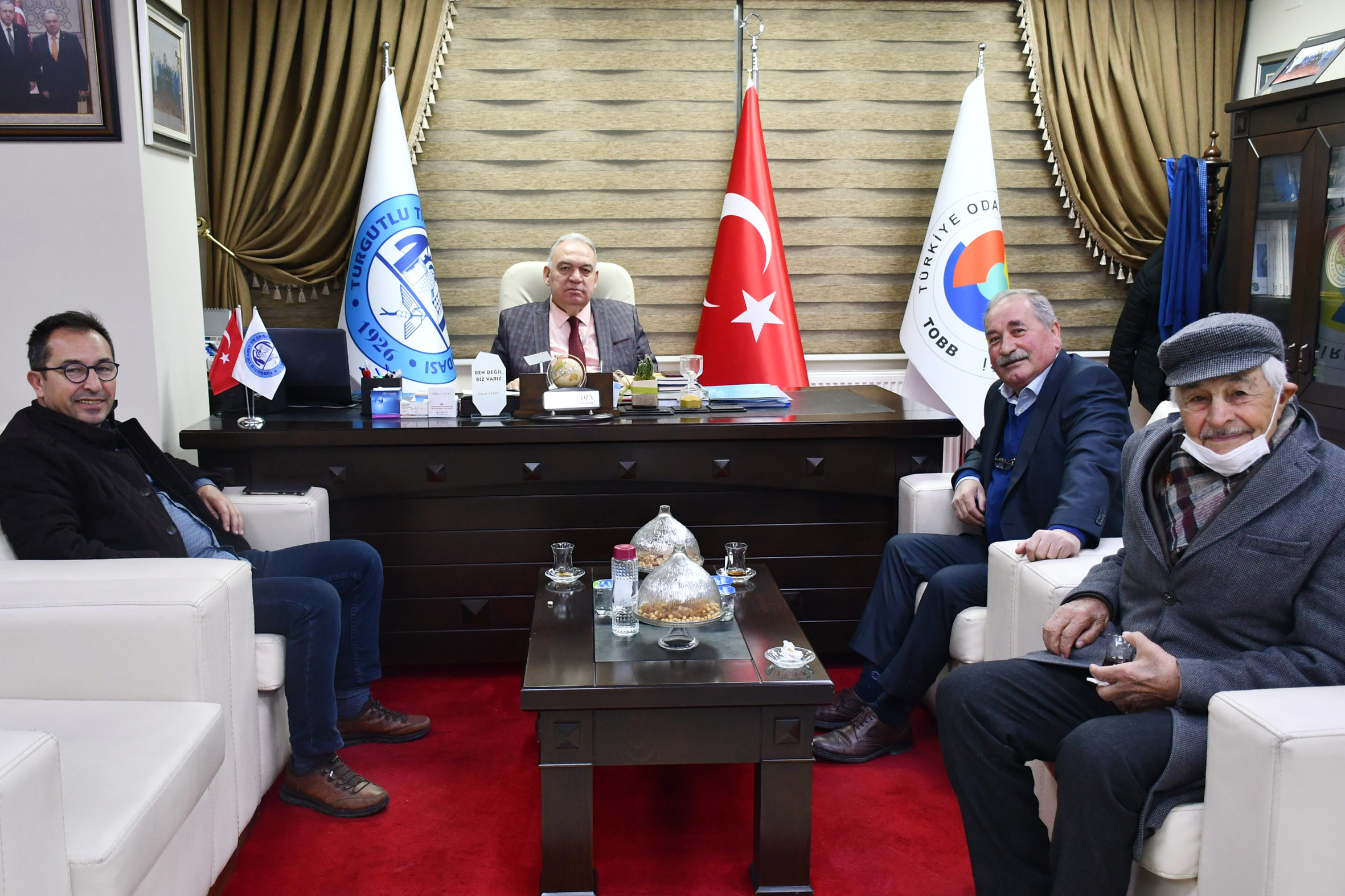 Turgutlu Ticaret ve Sanayi Odası (TUTSO) Yönetim Kurulu Başkanı Faruk Aydın ziyaretçilerini ağırlamaya devam ediyor.