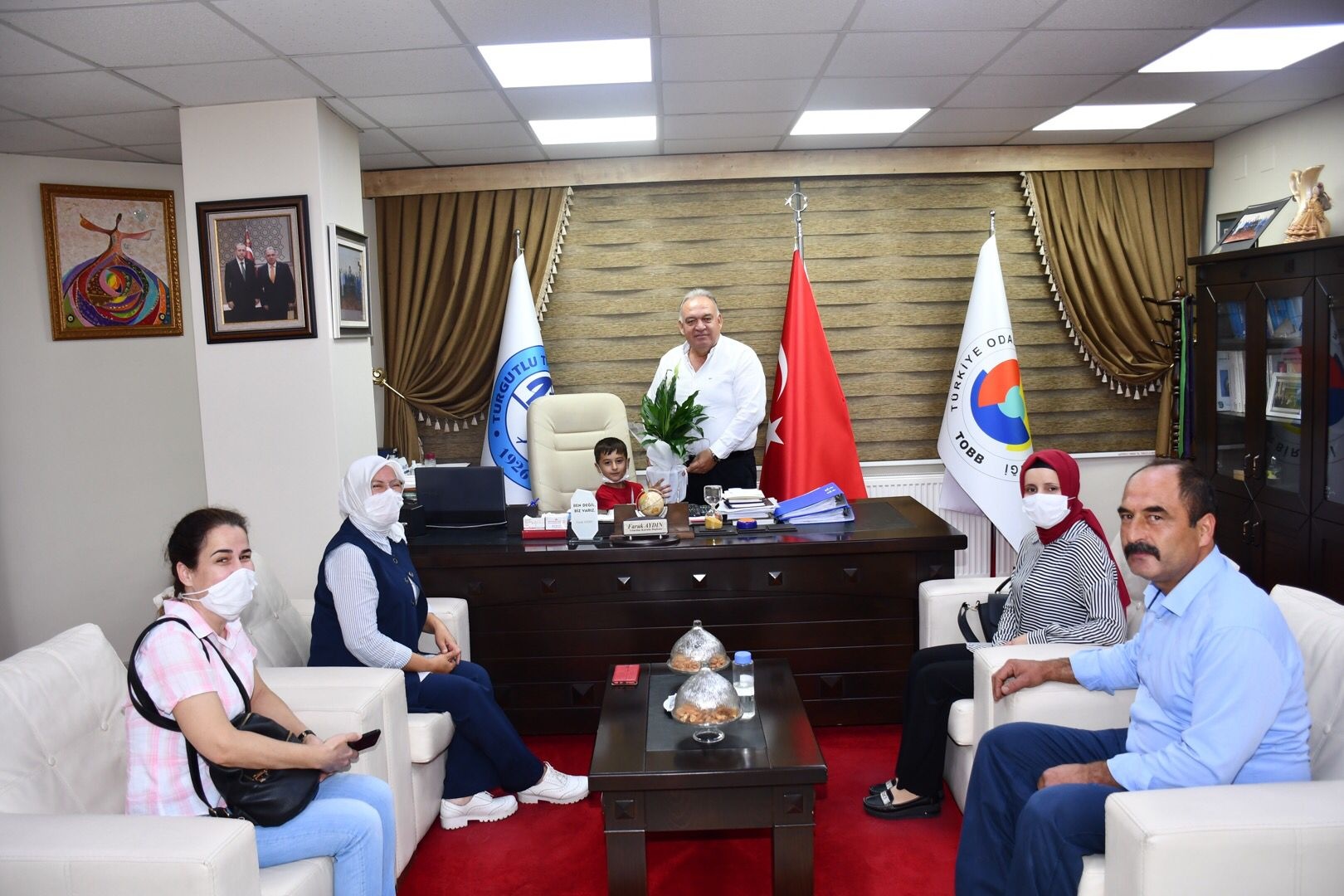 Faruk Aydin, Chairman of the board of directors of the Turgutlu Chamber of Commerce and Industry (TUTSO), was visited by officials of the Cumhuriyet Kindergarten.