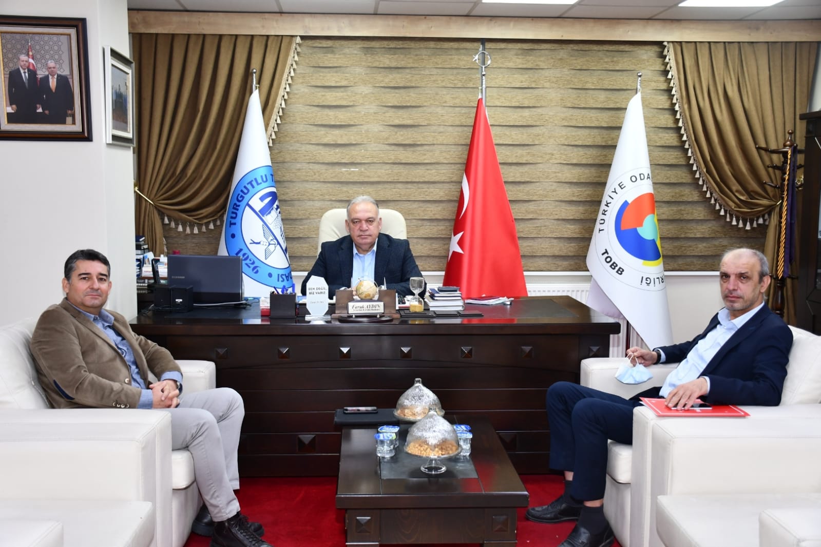 Ziyaretten duyduğu memnuniyeti dile getiren TUTSO Yönetim Kurulu başkanı Faruk Aydın, ziyaretçisine teşekkür etti.