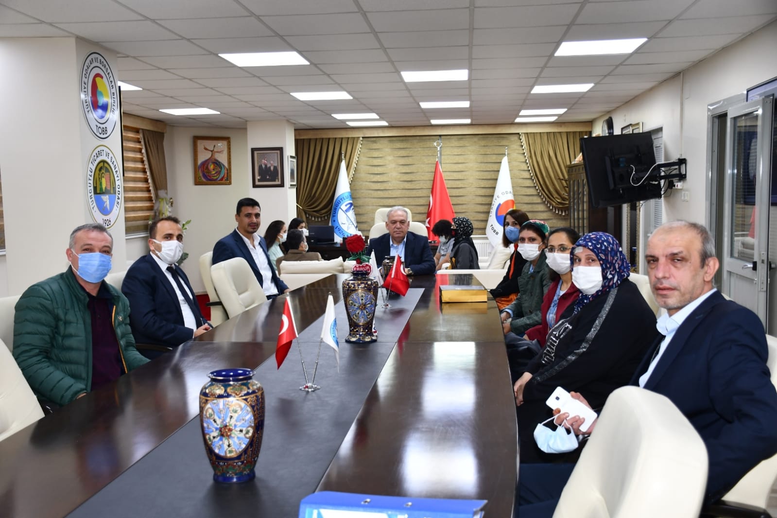 Hasan Ferdi Turgutlu Mesleki ve Teknik Anadolu Lisesi Müdürü Safa Karpat ve Okul Aile Birliği üyeleri, Turgutlu Ticaret ve Sanayi Odası (TUTSO) yönetim kurulu Başkanı Faruk Aydın'ı ziyaret etti.