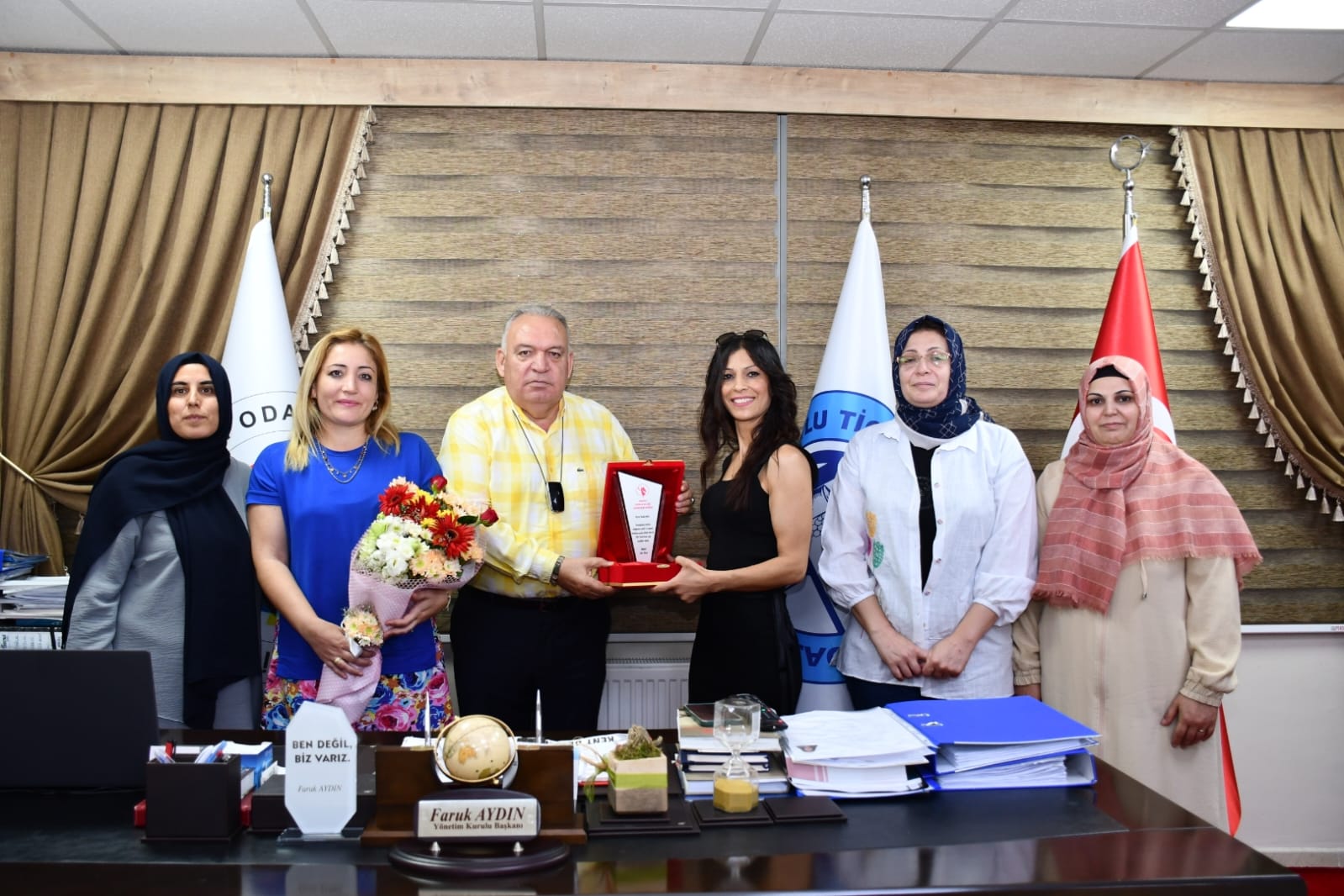 Turgutlu Kadınlar Kulübü Derneği Başkanı Alev Güzel, Başkan Yardımcısı Elif Aydın Çelik, Yönetim Kurulu üyeleri Türkan Şentürk, Esma Eryılmaz Göçmen, Nilüfer Özüak, Turgutlu Ticaret ve Sanayi Odası (TUTSO) Yönetim Kurulu Başkanı Faruk Aydın'ı ziyaret etti.