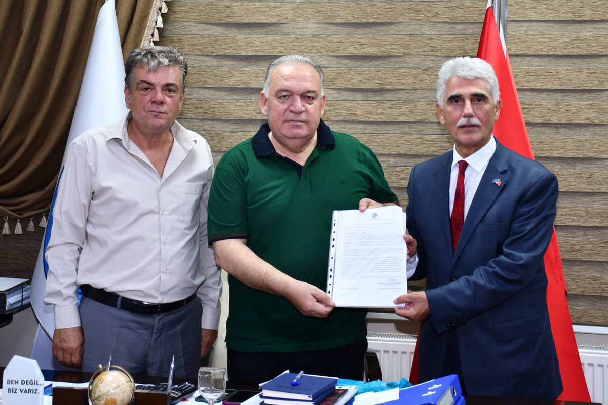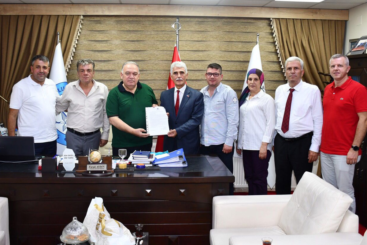 Kosovo Bursa Cultural Coordinator Recep Gündüz, President of the Albanian Cultural Association of Turgut Eyup Sabri Özbilen and their delegation visited Faruk Aydin, Chairman of the Board of Directors of the Turgut Chamber of Commerce and Industry (TUTSO), with Recep Gündüz, Kosovo Bursa Cultural Coordinator.