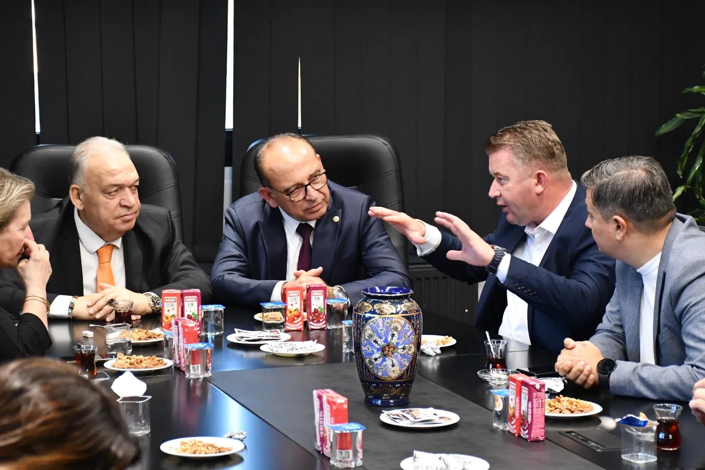 Turgutlu Ticaret ve Sanayi Odası (TUTSO) yönetim kurulu Başkanı Faruk Aydın'ı, Kuzey Makadonya'lı Belediye Başkanları ziyaret etti.