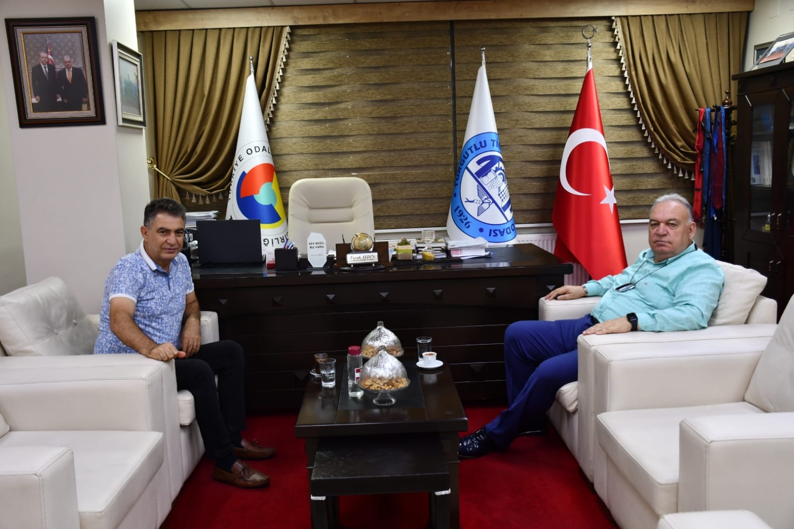 Turgutlu'da uzun yıllar İlçe Emniyet Müdürlüğü görevinde bulunan ve sonrasında ilçemizden atanarak çeşitli görevlerde bulunan, Polis Başmüfettişi Nesim Gezer, Turgutlu Ticaret ve Sanayi Odası (TUTSO) Yönetim Kurulu Başkanı Faruk Aydın'ı ziyaret etti.
