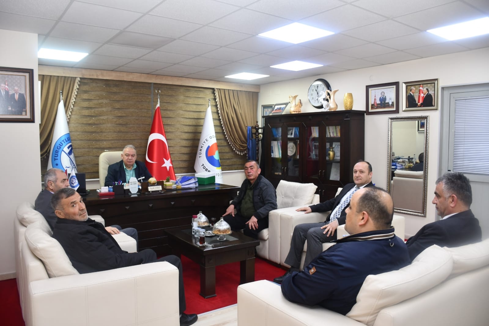 Turgutlu Ticaret ve Sanayi Odası (TUTSO) Yönetim Kurulu Başkanı Faruk Aydın ziyaretçilerini ağırlamaya devam ediyor.
