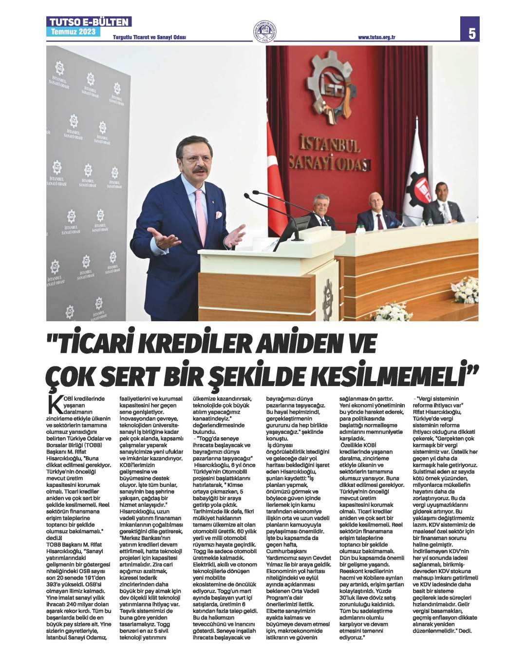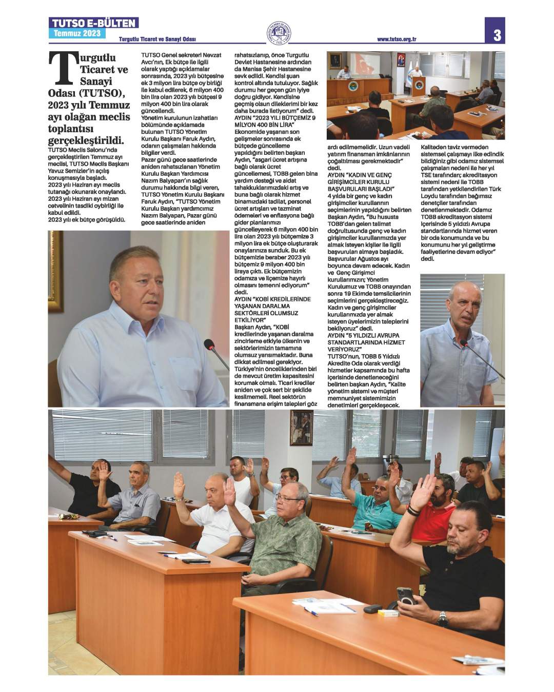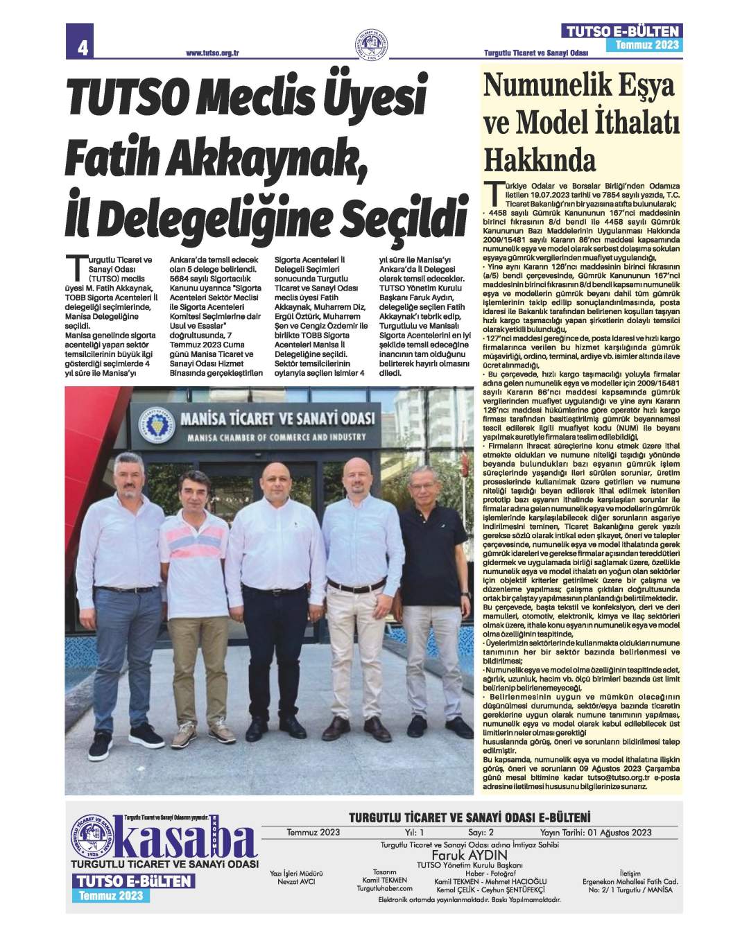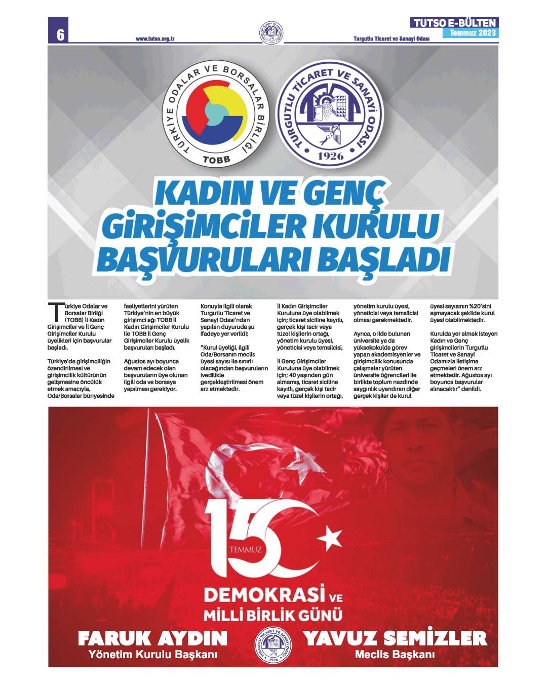 Turgutlu Ticaret ve Sanayi Odası, 2023 Yılı Temmuz ayı içerisinde Yönetim Kurulu ve Meclis ile oda faaliyetlerinin yer aldığı aylık e-bülteni yayınlandı.