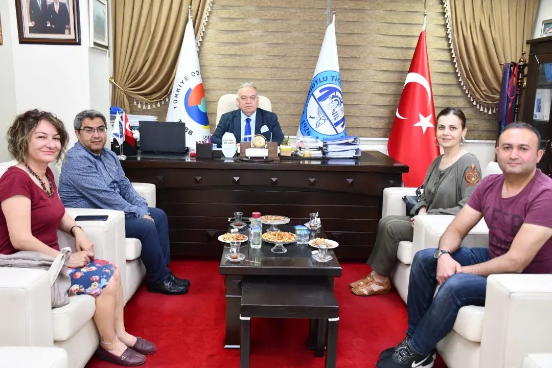TEV Cemile ve Samiye Bayar okul müdürü Mehmet Emekcil, müdür yardımcısı Filiz Gülcan, müdür yardımcısı Mustafa Kozan ile öğretmen Halime Özdal, Turgutlu Ticaret ve Sanayi Odası (TUTSO) Yönetim Kurulu Başkanı Faruk Aydın'ı ziyaret etti.
