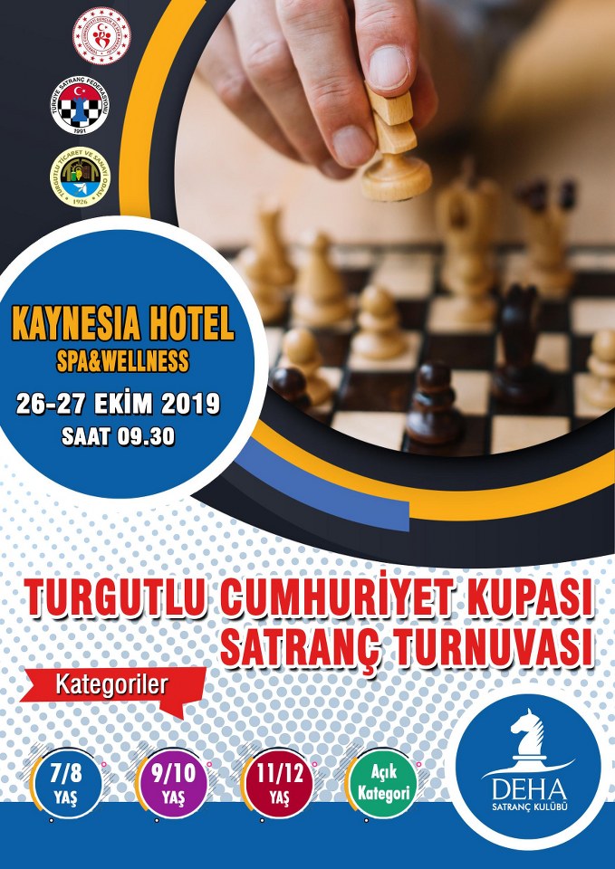 25-10-2019- Turgutlu Cumhuriyet Kupası Satranç Turnuvası 26.10.2019 Cumartesi günü saat 10:30' da Kaynesıa Hotel' de yapılacaktır.