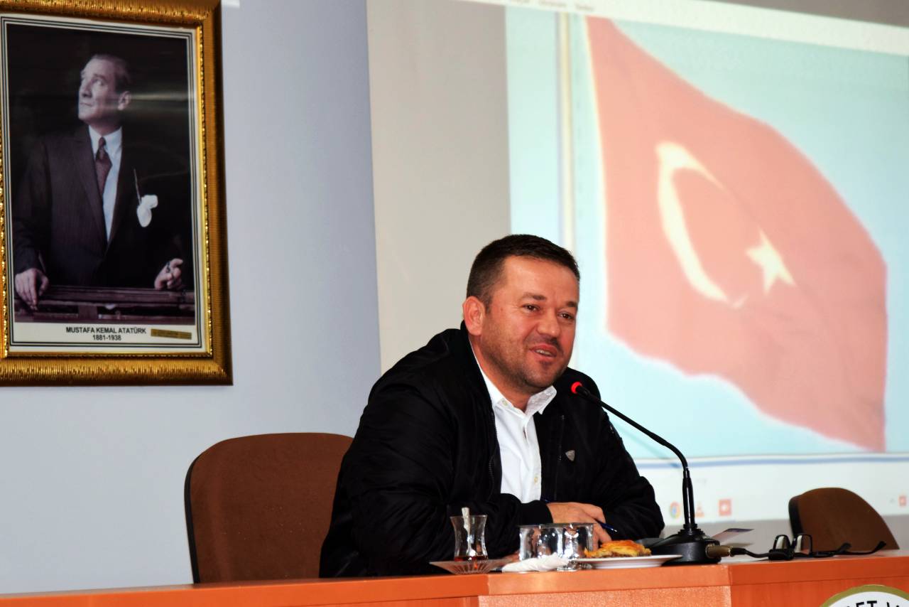 Yönetim kurulunun izahatları bölümünde açıklamada bulunan TUTSO Yönetim Kurulu Başkanı Faruk Aydın, odanın çalışmaları hakkında bilgiler verdi.