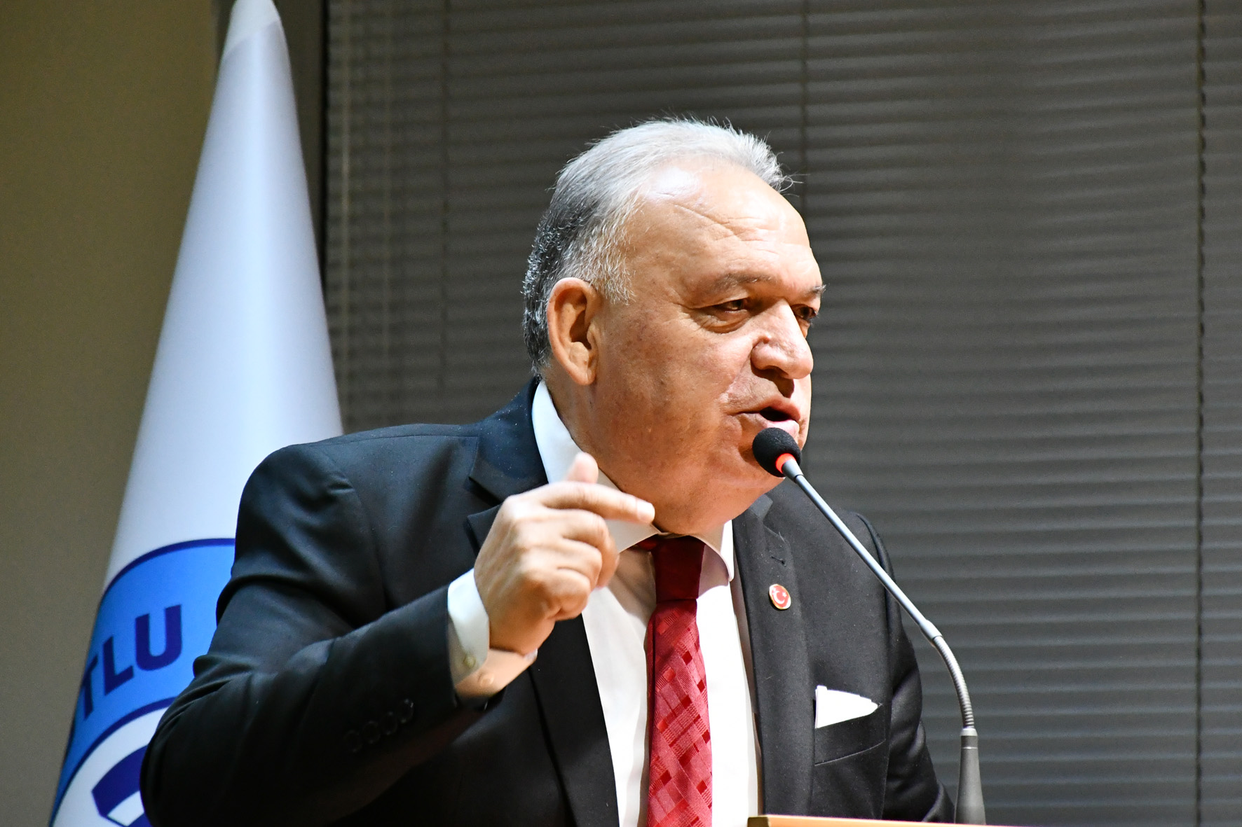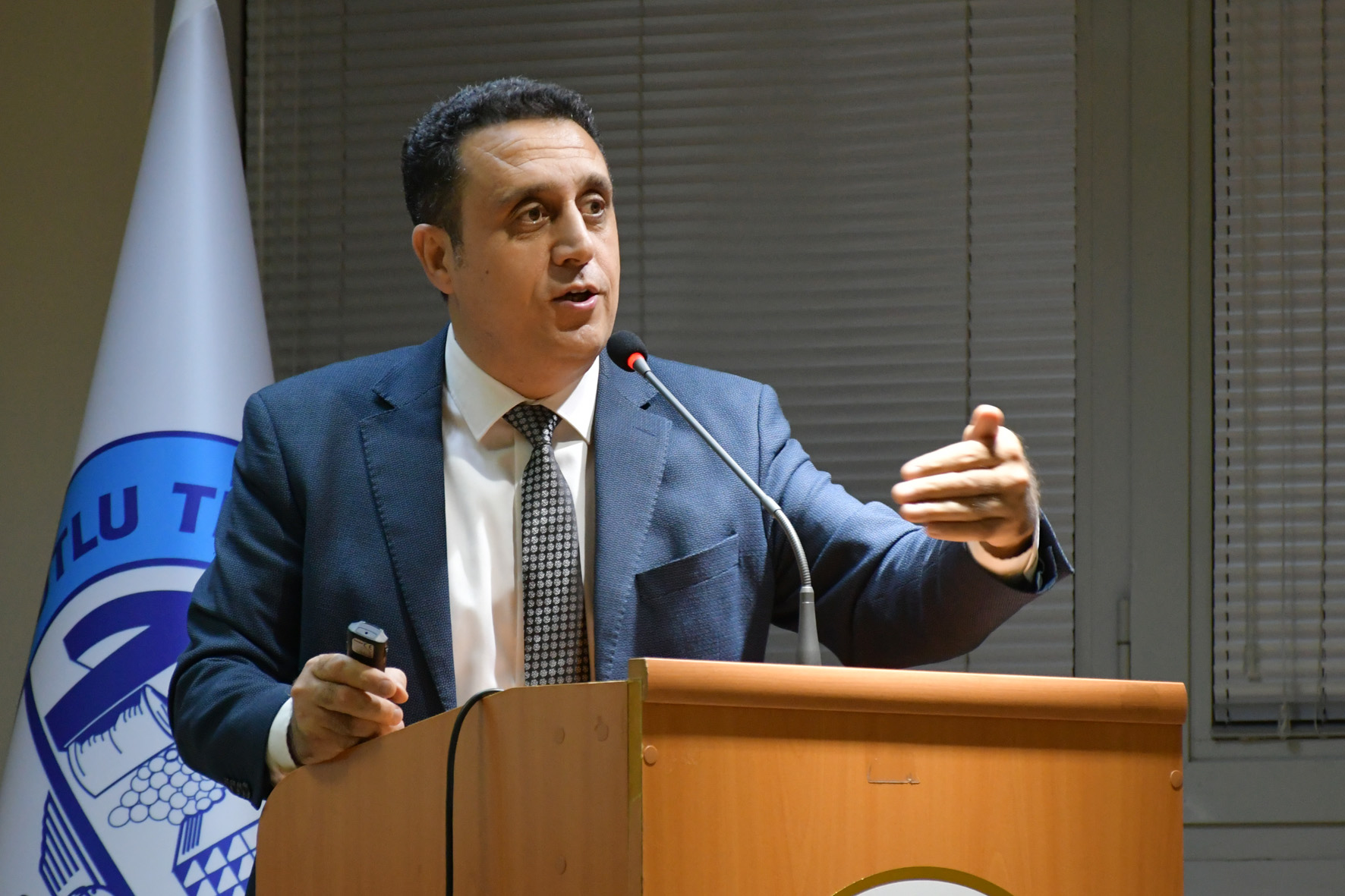 Konuşmasına Prof. Dr. Mahmut Karğın'a teşekkür ederek başlayan TUTSO Yönetim Kurulu başkanı Faruk Aydın, "Celal Bayar Üniversitesi İktisadi İdari Bilimler dekanı, aynı zamanda TOBB Akademik Danışmanı çok değerli hocamız Profesör Doktor Mahmut Karğın bugün bizlere ekonomik gidişat hakkında detaylı bilgi verdiler. Değerli hocamıza bizimle paylaştığı bilgiler için teşekkür ediyorum" dedi.