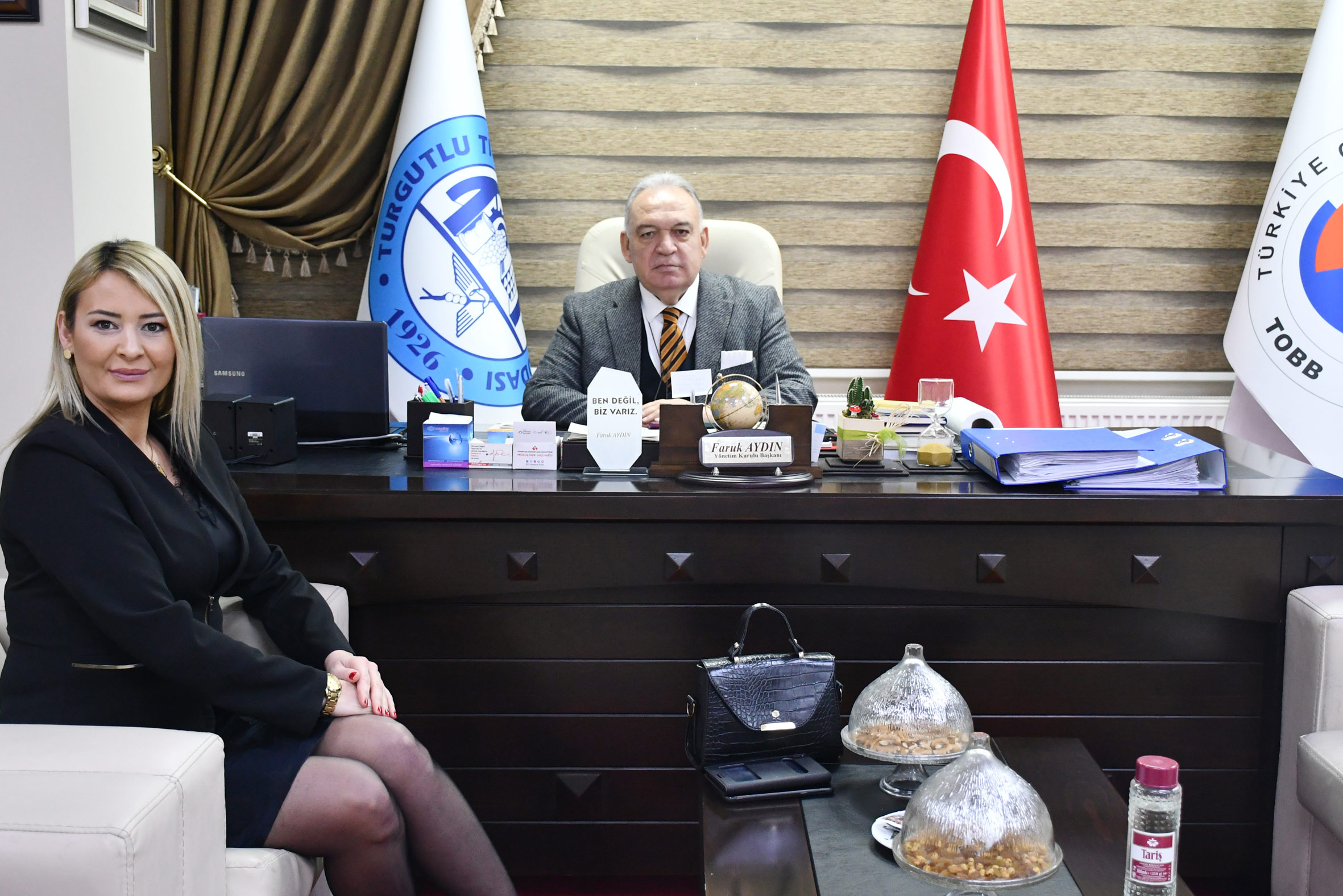 Özel Kocatürk Okulları Turgutlu Şubesi Genel Müdürü Gülay Engin, Turgutlu Ticaret ve Sanayi Odası Yönetim Kurulu Başkanı Faruk Aydın’ı makamında ziyaret etti. Ziyaret sonrasında iki kurum arasında eğitim işbirliği protokolü imzaladı.