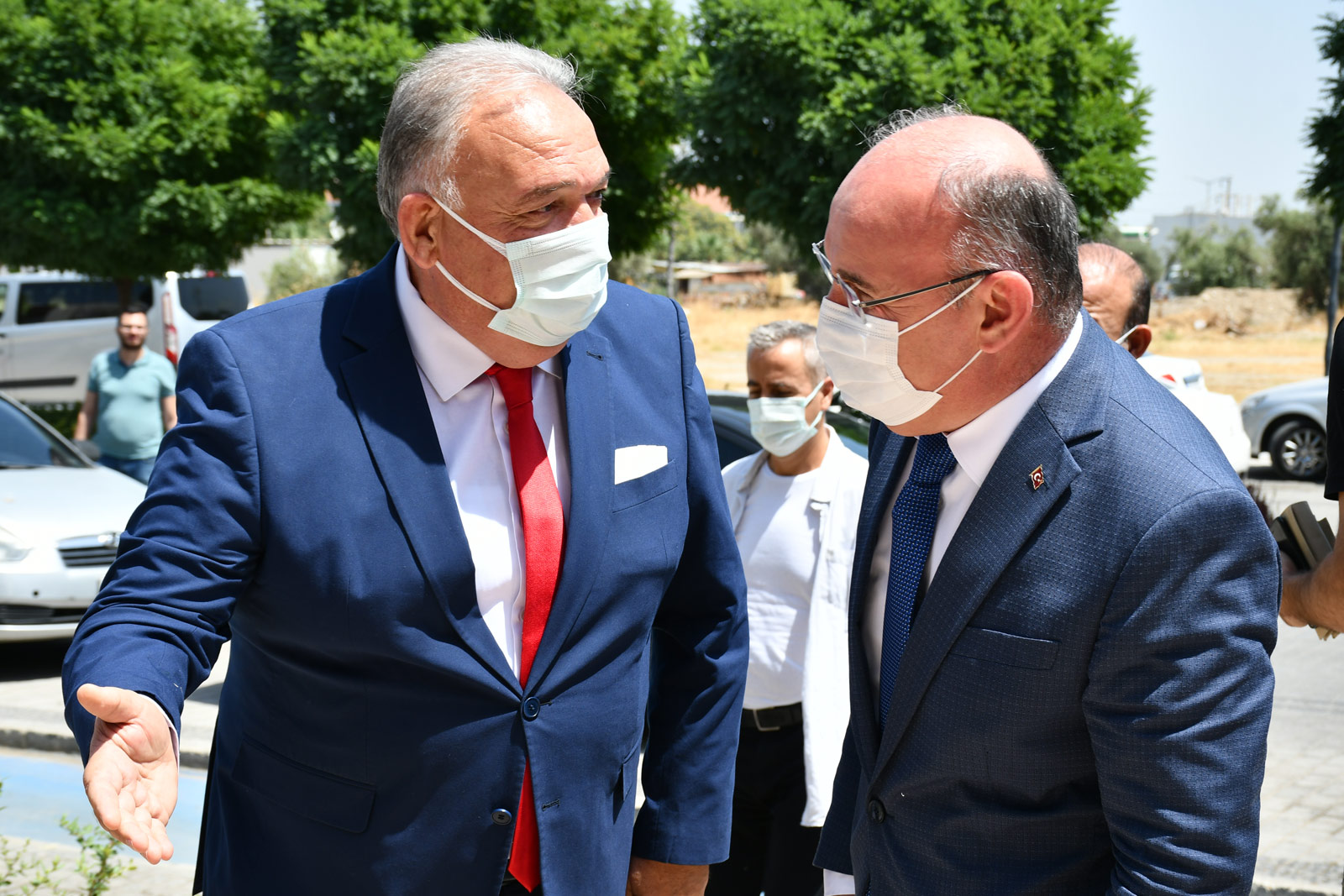 The Governor of Manisa Yaşar Karadeniz, who came to Turgutlu for a number of visits, took part in the visit of Turgutlu District Governor Ali Yilmaz, Mayor Cetin Akin, District Gendarmerie Commander Major Halim Karaer, District Police Chief Harun Tutak and members of the Board of Directors of TUTSO during his visit to TUTSO.