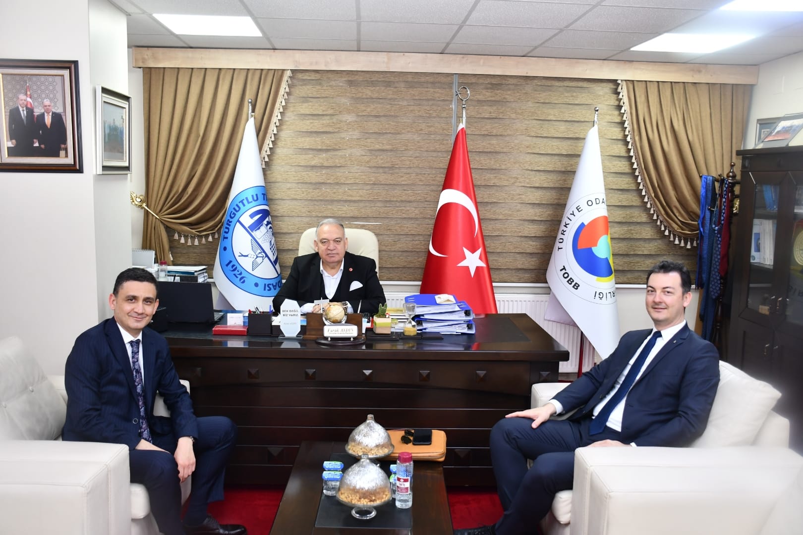 Ziraat Bankası Kurumsal Şube Yöneticisi Mithat Şahinci ve Kurumsal Müşteri İlişkileri Yöneticisi Onur Karapıçak, Turgutlu Ticaret ve Sanayi Odası (TUTSO) Yönetim Kurulu Başkanı Faruk Aydın'ı ziyaret ettiler.