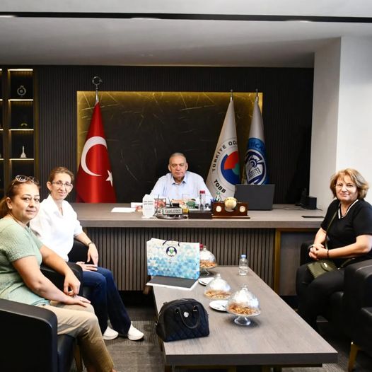 Ahmetli SS. Tarımsal Kalkınma Kooperatifi Yönetim Kurulu Başkanı Birsen Üçlü ve üyeleri Müzeyyen Mintaş ile Dilek Teker, TUTSO Yönetim Kurulu Başkanı Faruk Aydın'ı ziyaret etti.