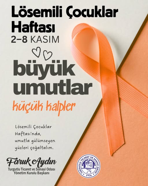 Turgutlu Ticaret ve Sanayi Odası (TSO) Yönetim Kurulu Başkanı Faruk Aydın, 2–8 Kasım tarihleri arasında kutlanan Lösemili Çocuklar Haftası dolayısıyla bir mesaj yayımladı.