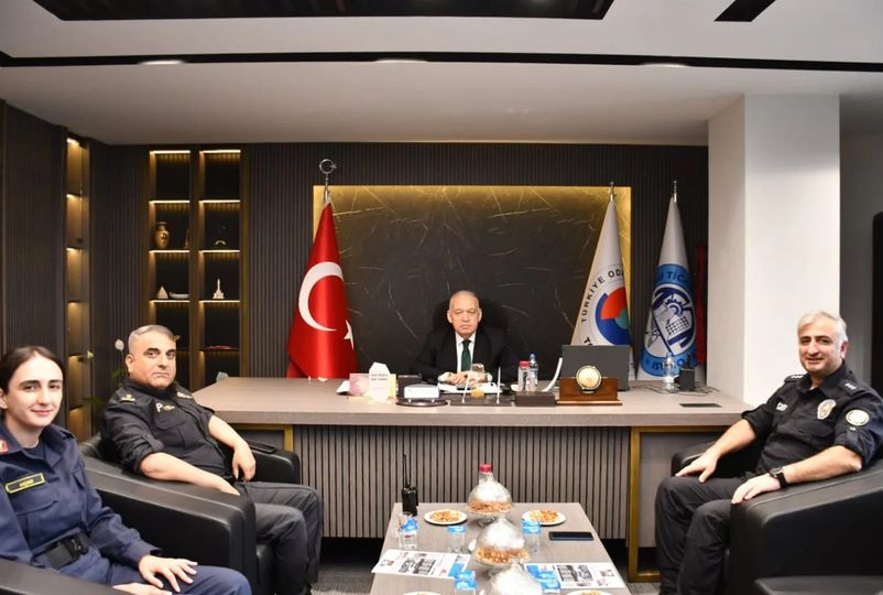 Turgutlu İlçe Emniyet Müdürü Mehmet Dursun, Ahmetli İlçe Jandarma Komutanı Teğmen Gülşen Uçar ve Ahmetli İlçe Emniyet Amiri Halil Beyhan, Turgutlu Ticaret ve Sanayi Odası'nda Yönetim Kurulu Başkanı Faruk Aydın'ı ziyaret etti.