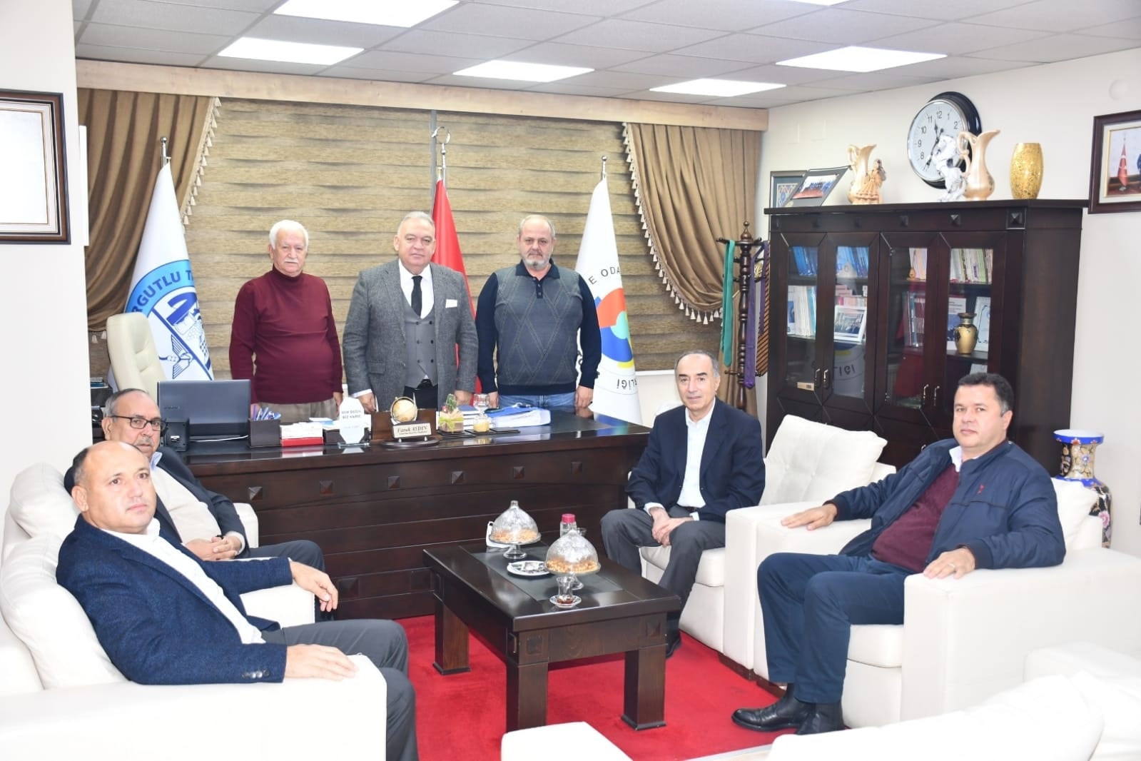 TARİŞ Zeytin ve Zeytinyağı Birliği yönetim kurulu başkanı Hilmi Sürek, yönetim kurulu üyeleri Nihat Büyükerol, H. Ümit Özenbaş, Murat Özbaş, Salih Cansız ile Genel Müdür Seyit Güngör Sarman, Turgutlu Ticaret ve Sanayi Odası (TUTSO) Yönetim Kurulu Başkanı Faruk Aydın'ı ziyaret etti.