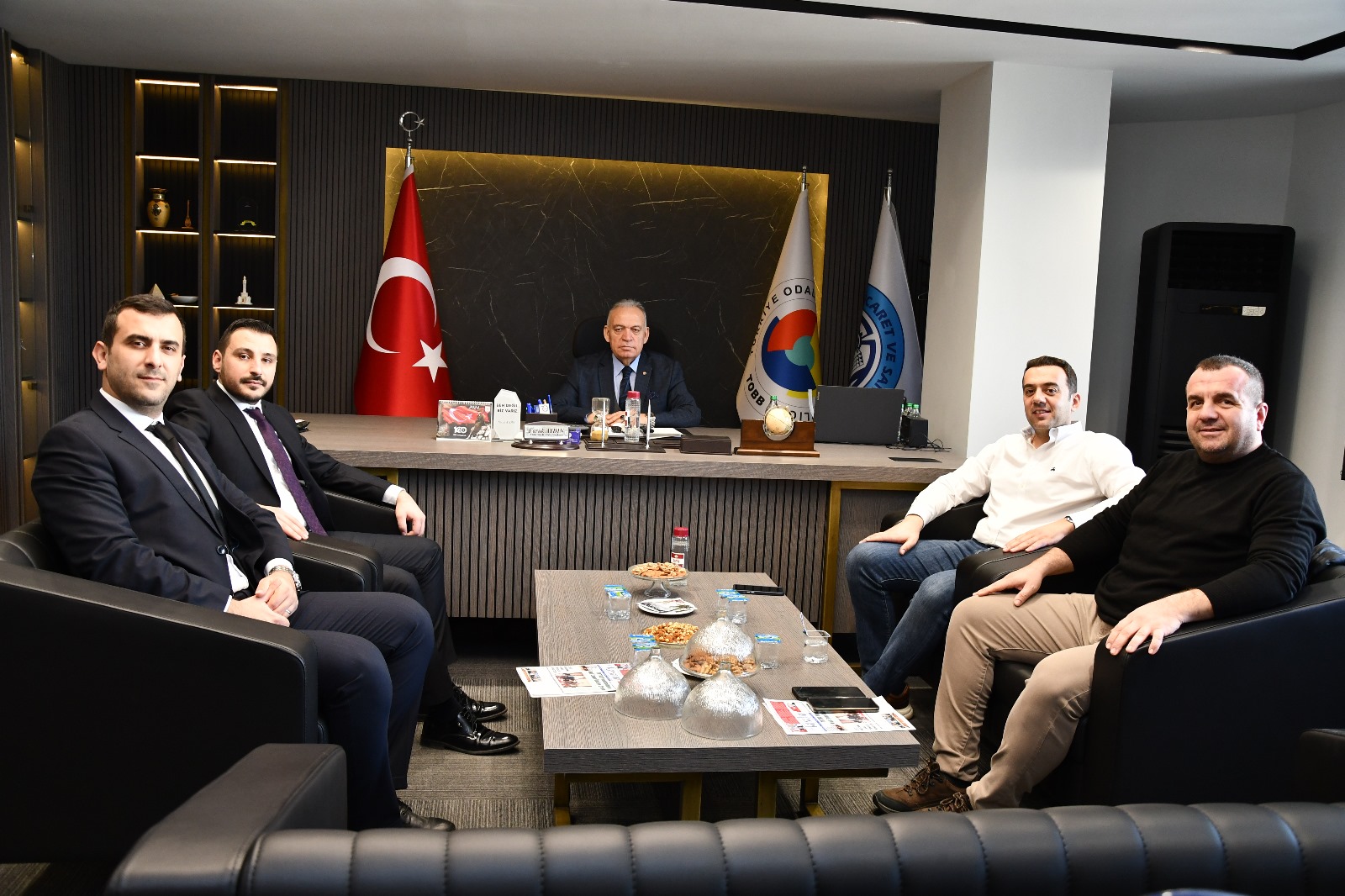 Kula Yağ ve Emek Yem San. Tic. A.Ş. yönetim kurulu üyesi Uğur Kula, Turgutlulu İş insanlarından Haluk Şevket Baba, Vakıf Katılım İzmir Şube müdürü Mehmet Emin Gümüş ve Pazarlama sorumlusu Batuhan Bozkurt, Turgutlu Ticaret ve Sanayi Odası'nda Yönetim Kurulu Başkanı Faruk Aydın'ı ziyaret etti.
