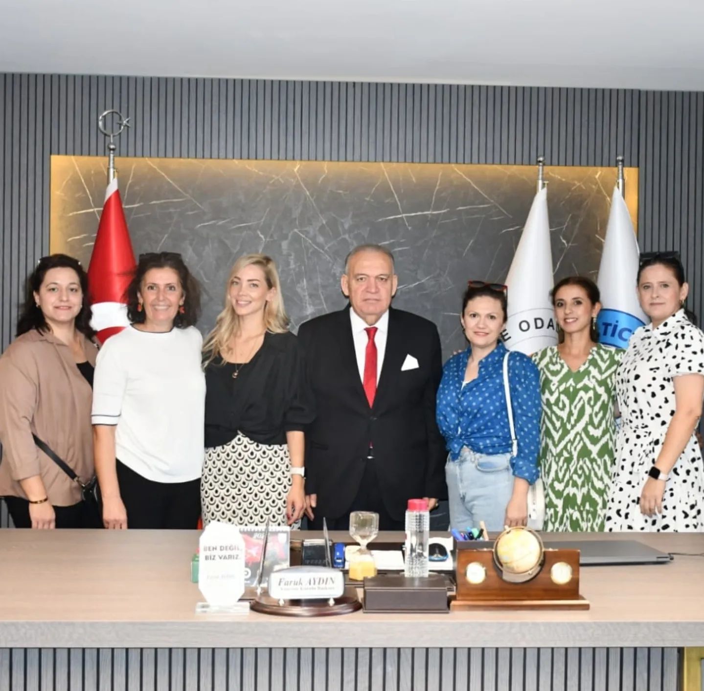 Besime Elagöz Ortaokulu Okul Aile Birliği Başkanı Damla Hacıoğlu, Başkan Yardımcısı Cansu Doğan, üyeler Deniz Zeybek, Gülşah Uzun ve Duygu Torun ile Turgutlu Anne Eli Kadın Kooperatifi Başkanı Nuray Çiçek, TUTSO Yönetim Kurulu Başkanı Faruk Aydın'ı ziyaret etti.
