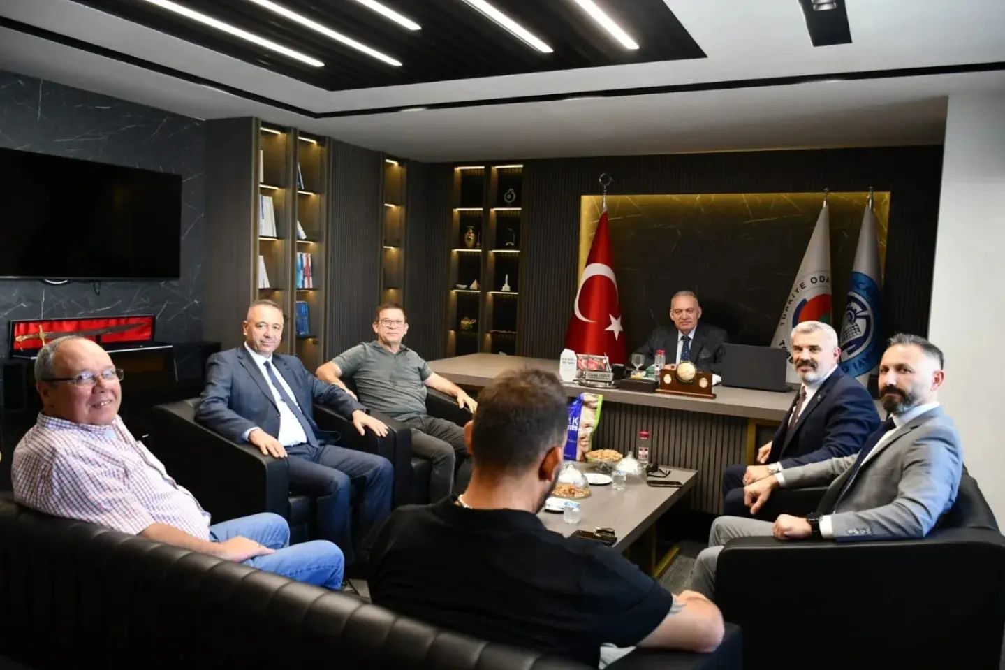Çetin Group Yönetim Kurulu Başkanı ve Tekirdağ Çerkezköy Ticaret ve Sanayi Odası Yönetim Kurulu Başkanı Ahmet Çetin ve Çetin Group Ege Bölge Müdürü Eren Serhat Polat, Turgutlu Ticaret ve Sanayi Odası Yönetim Kurulu Başkanı Faruk Aydın'ı ziyaret etti.