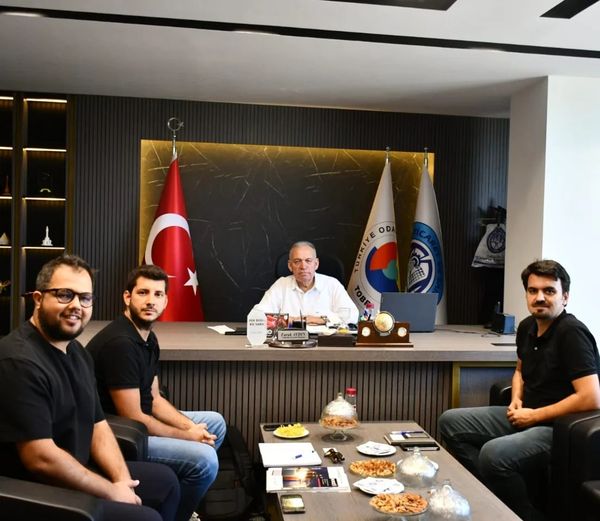 Deltat Mühendislik firması Makine Mühendisi Mehmet İyisoy, Elektrik-Elektronik Mühendisi İsmail Alğın ve Sağlık Personeli Emre Ali Gümüş, TUTSO Yönetim Kurulu Başkanı Faruk Aydın'ı ziyaret etti.