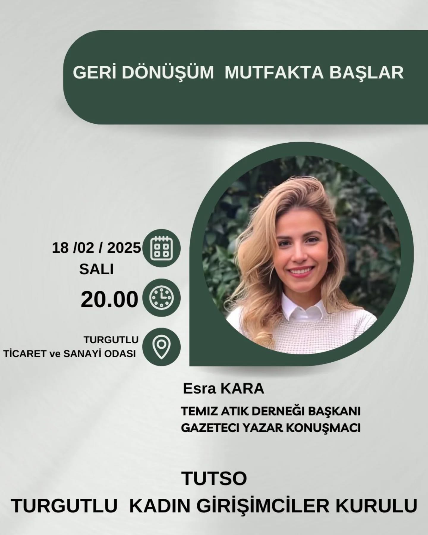 Turgutlu Ticaret ve Sanayi Odası Kadın Girişimciler Kurulu tarafından, ‘Geri Dönüşüm Mutfaktan Başlar’ konulu seminer düzenlenecek.