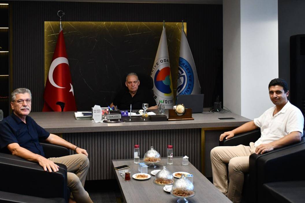 Turgutlu Ticaret ve Sanayi Odası (TUTSO) üyesi İbrahim Kemal Tantuğ ile Hasan Ferdi Turgutlu Mesleki ve Teknik Anadolu Lisesi müdür vekili Murat Mehmet Güler, TUTSO Yönetim Kurulu başkanı Faruk Aydın'a geçmiş olsun ziyaretinde bulundu.