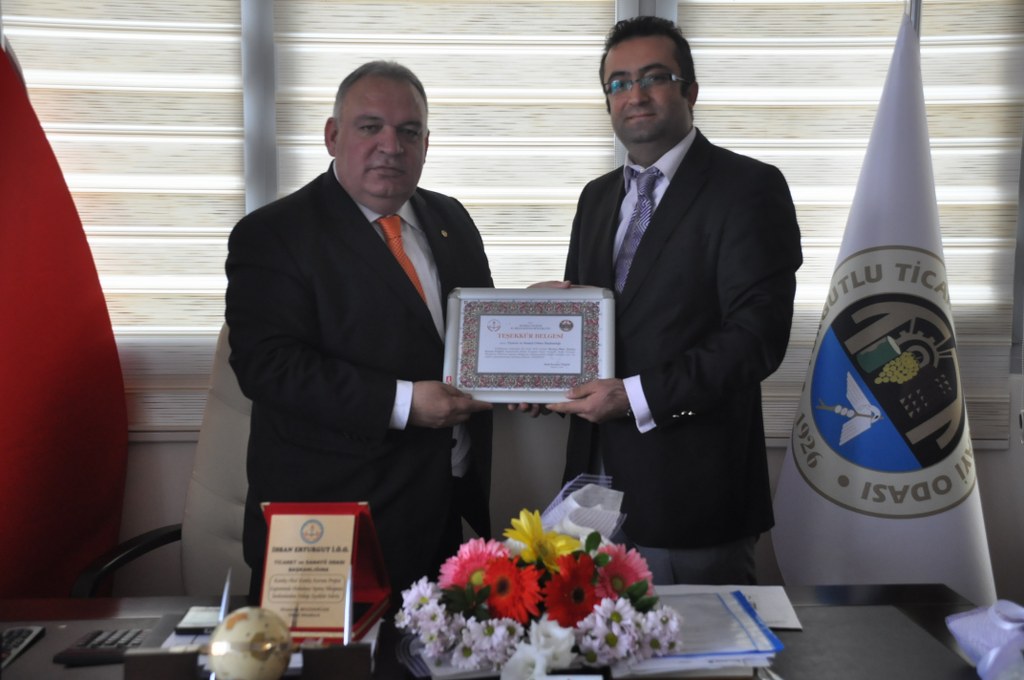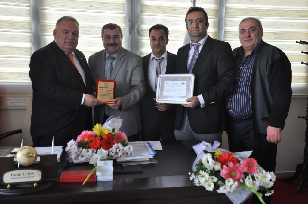 İdari kadrosu Odamızı ziyaret ederek Teşekkür plaketi takdim ettiler.