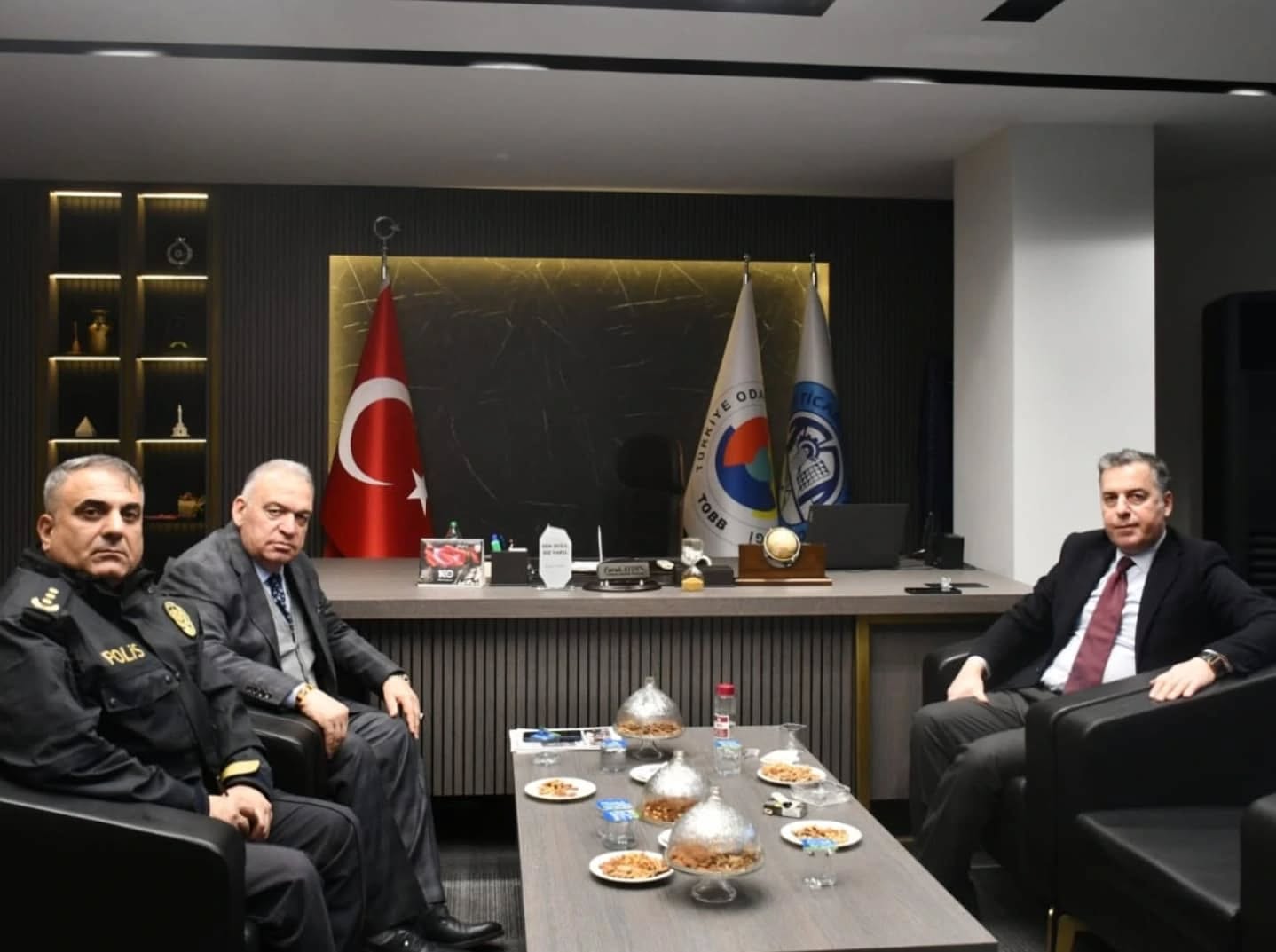 Turgutlu Kaymakamı Selami Kapankaya ve İlçe Emniyet Müdürü Mehmet Dursun, Turgutlu Ticaret ve Sanayi Odası Yönetim Kurulu Başkanı Faruk Aydın'ı ziyaret etti.