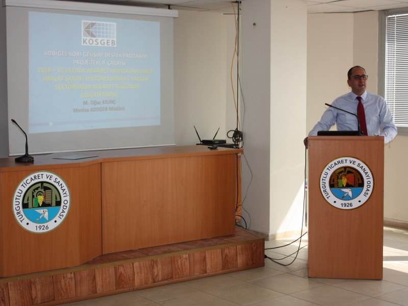 KOBİ’lerin rekabet güçlerini geliştirmeleri için hazırlanan proje desteğiyle ilgili bilgilendirme toplantısı Odamız ev sahipliğinde KOSGEB Manisa Müdürü M. Oğuz Kılınç tarafından katılımcı işletmeler anlatıldı.