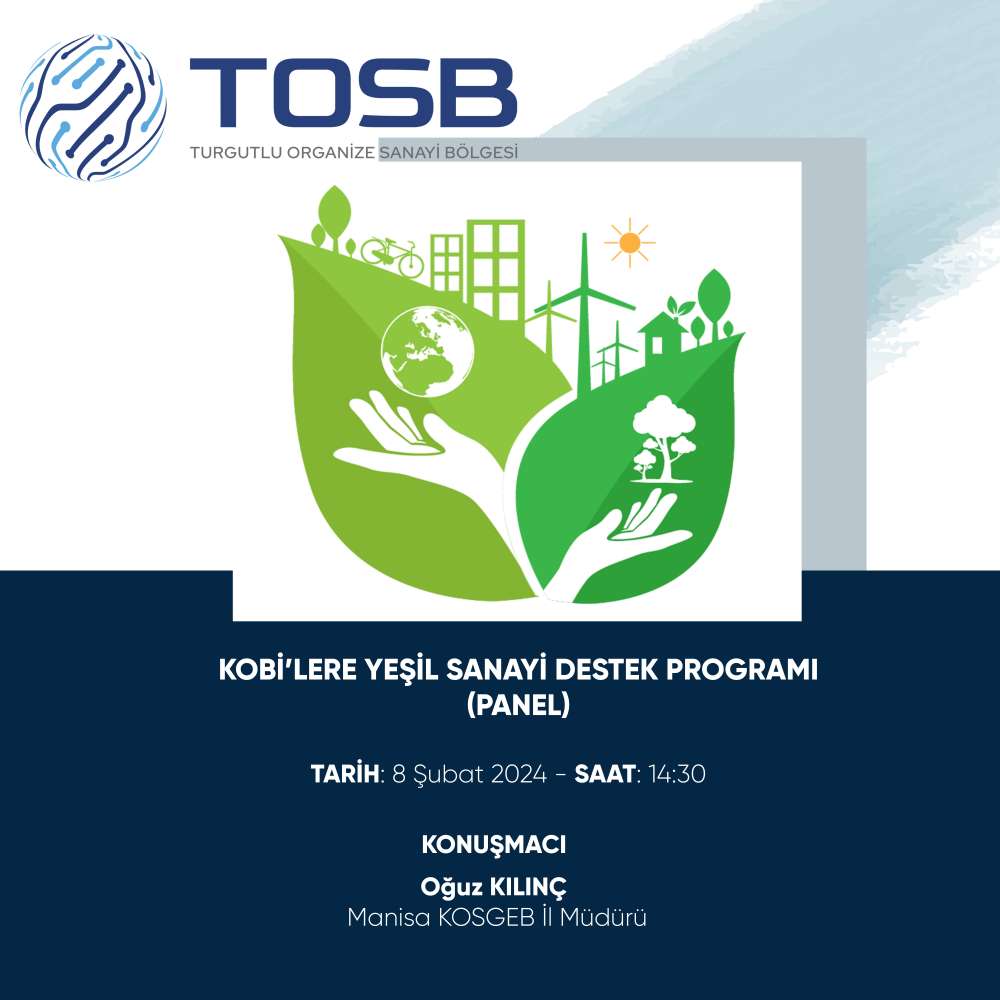 Manisa’nın Turgutlu ilçesinde, Kobilere Yeşil Sanayi Destek Programı konulu panel verilecek.