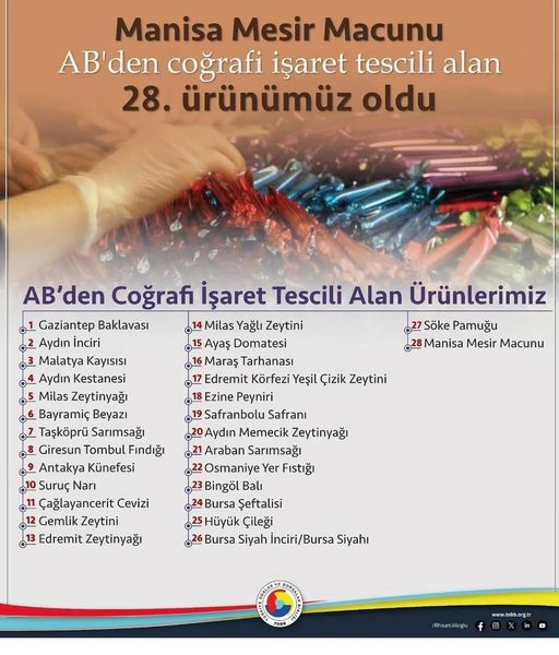 açıklama yapıldı : Avrupa Birliği'nden coğrafi işaret tescili alan 28. ürünümüz Manisa Mesir