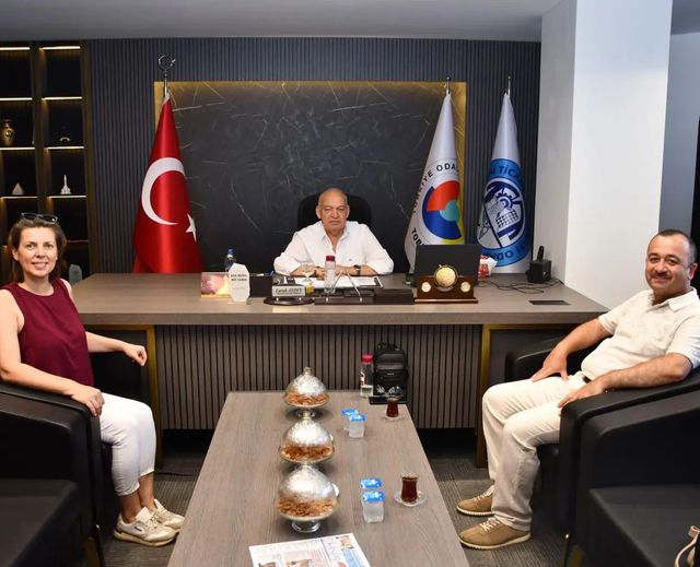Turgutlu İlçe Milli Eğitim Şube Müdürü Zekeriya Çamlıbel ile Mehmet Altan Anaokulu Müdürü Nurcan Yılmaz, Turgutlu Ticaret ve Sanayi Odası (TUTSO) Yönetim Kurulu Başkanı Faruk Aydın'ı ziyaret etti.