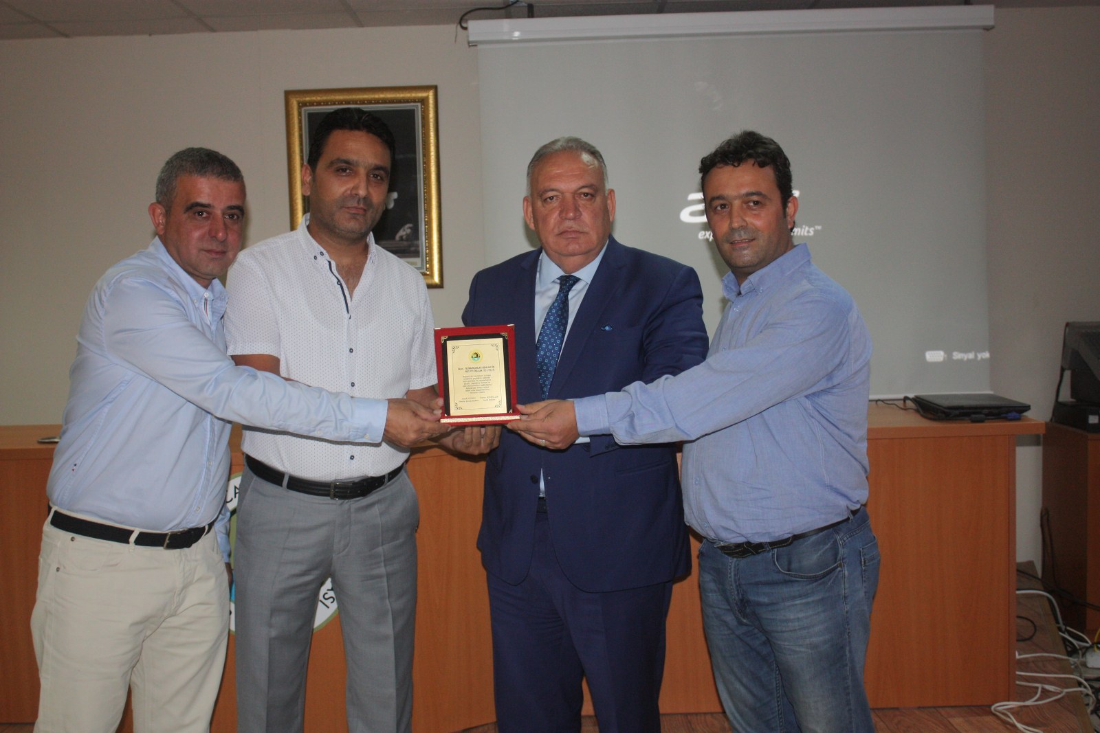 Cem Yıldırancan’ın konuşmasının ardından, Yönetim Kurulu Başkanı Faruk Aydın ve Meclis Başkan Yardımcısı Şükrü Cem Deligöz tarafından şirket yetkililerine tebrik plaketi takdim edildi.