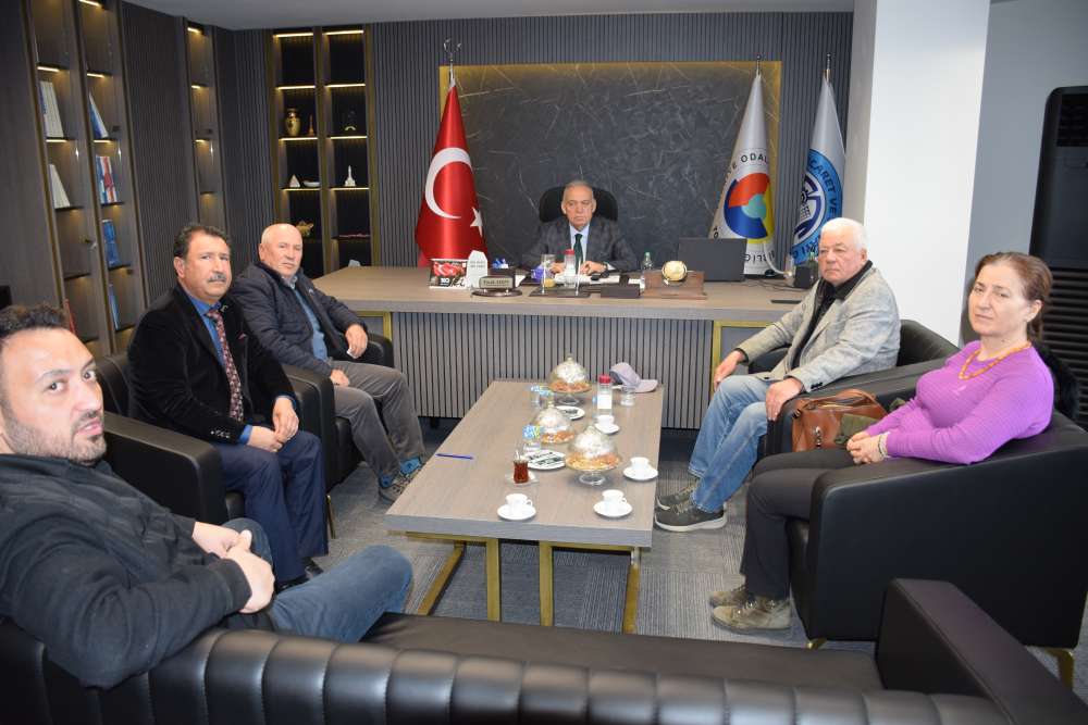 Turgutlu Ticaret ve Sanayi Odası (TUTSO) yönetim kurulu Başkanı Faruk Aydın'ı, Salihli Tariş Pamuk Birliği Başkanı Zeki Ertuğrul