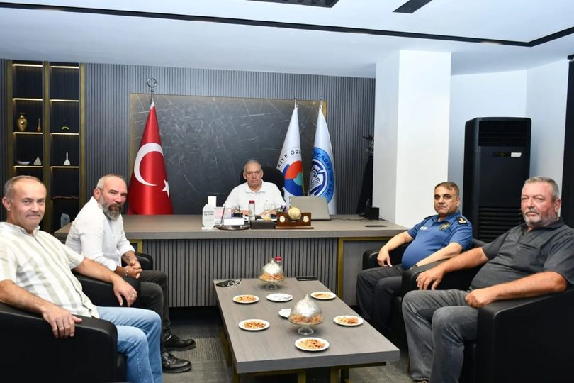 Tariş Dikili Kooperatifi ve Dikili Ziraat Odası Yönetim Kurulu Başkanı Mesut Taslak, Tariş Dikili Kooperatifi Müdürü Suat Çıbıkçı ve Turgutlu İlçe Emniyet Müdürü Mehmet Dursun, TUTSO Yönetim Kurulu Başkanı Faruk Aydın'ı ziyaret etti.