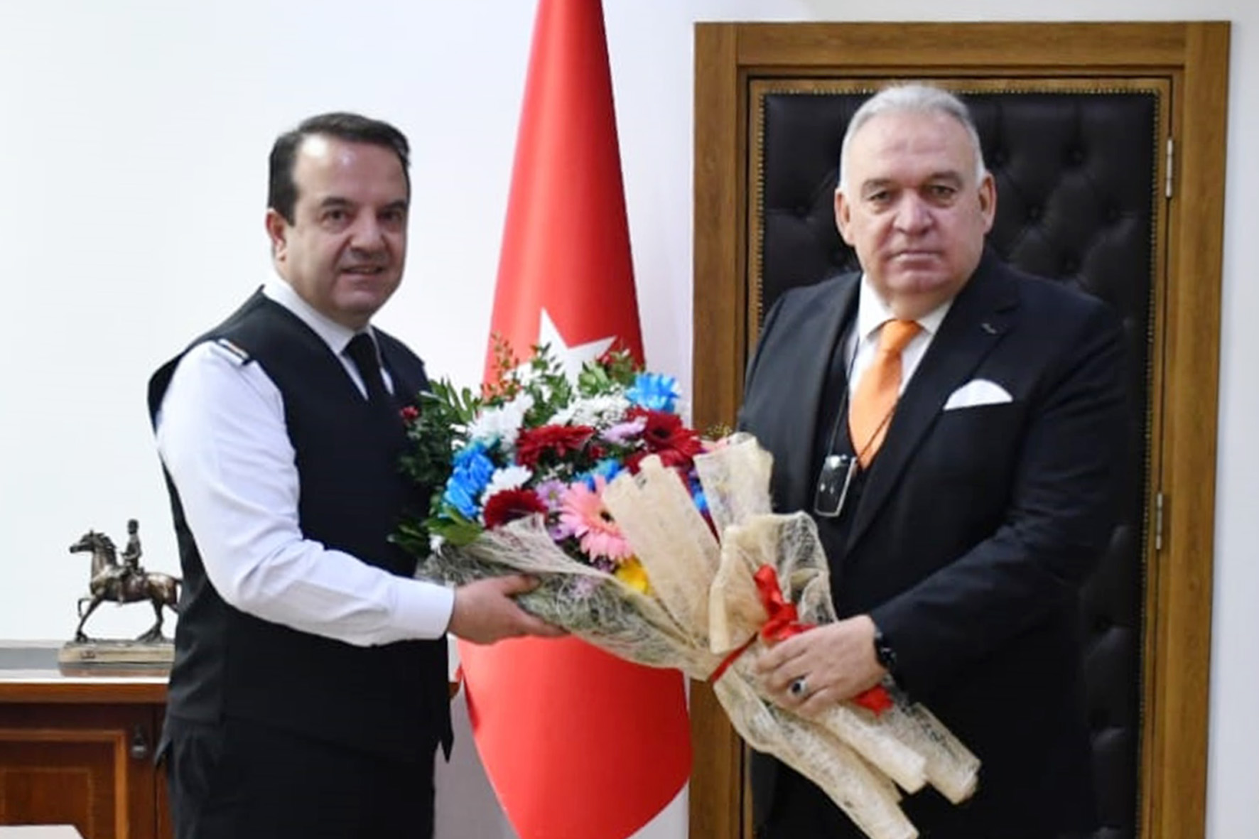 Tuğgeneral Zafer Tombul tarafından karşılanan TUTSO Yönetim Kurulu Başkanı Faruk Aydın, çiçek ve hediye takdim etti.