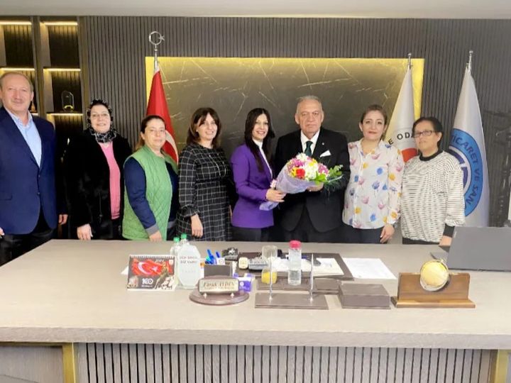 Turgutlu Kadınlar Kulübü Derneği Başkanı Alev Güzel, Başkan Yardımcısı Elif Aydın Çelik ve Yönetim Kurulu üyeleri, Turgutlu Ticaret ve Sanayi Odası (TUTSO) Yönetim Kurulu Başkanı Faruk Aydın'ı ziyaret etti.
