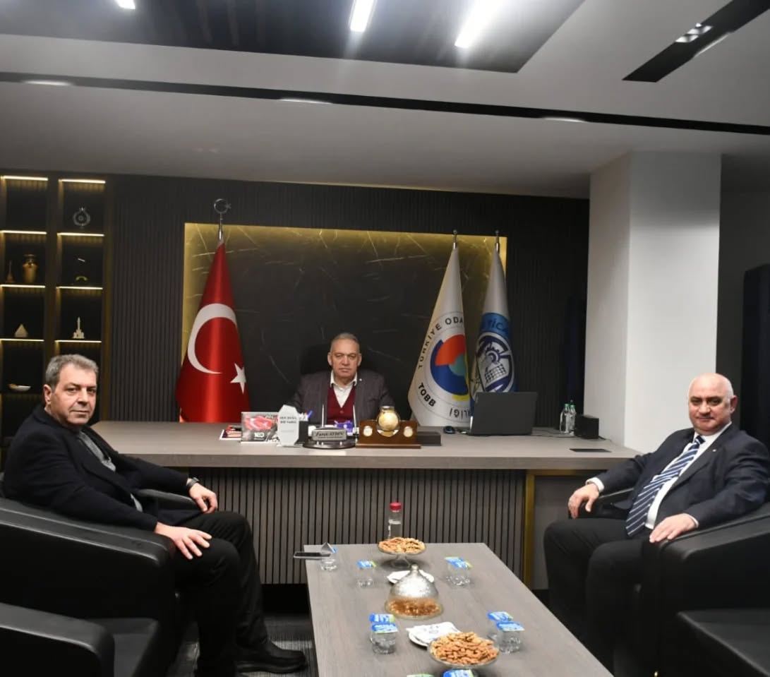 Turgutlu Ticaret Borsası Yönetim Kurulu Başkanı Selçuk Temel ile Başkan Yardımcısı Bekir Aykut, Turgutlu Ticaret ve Sanayi Odası Yönetim Kurulu Başkanı Faruk Aydın'ı ziyaret etti.