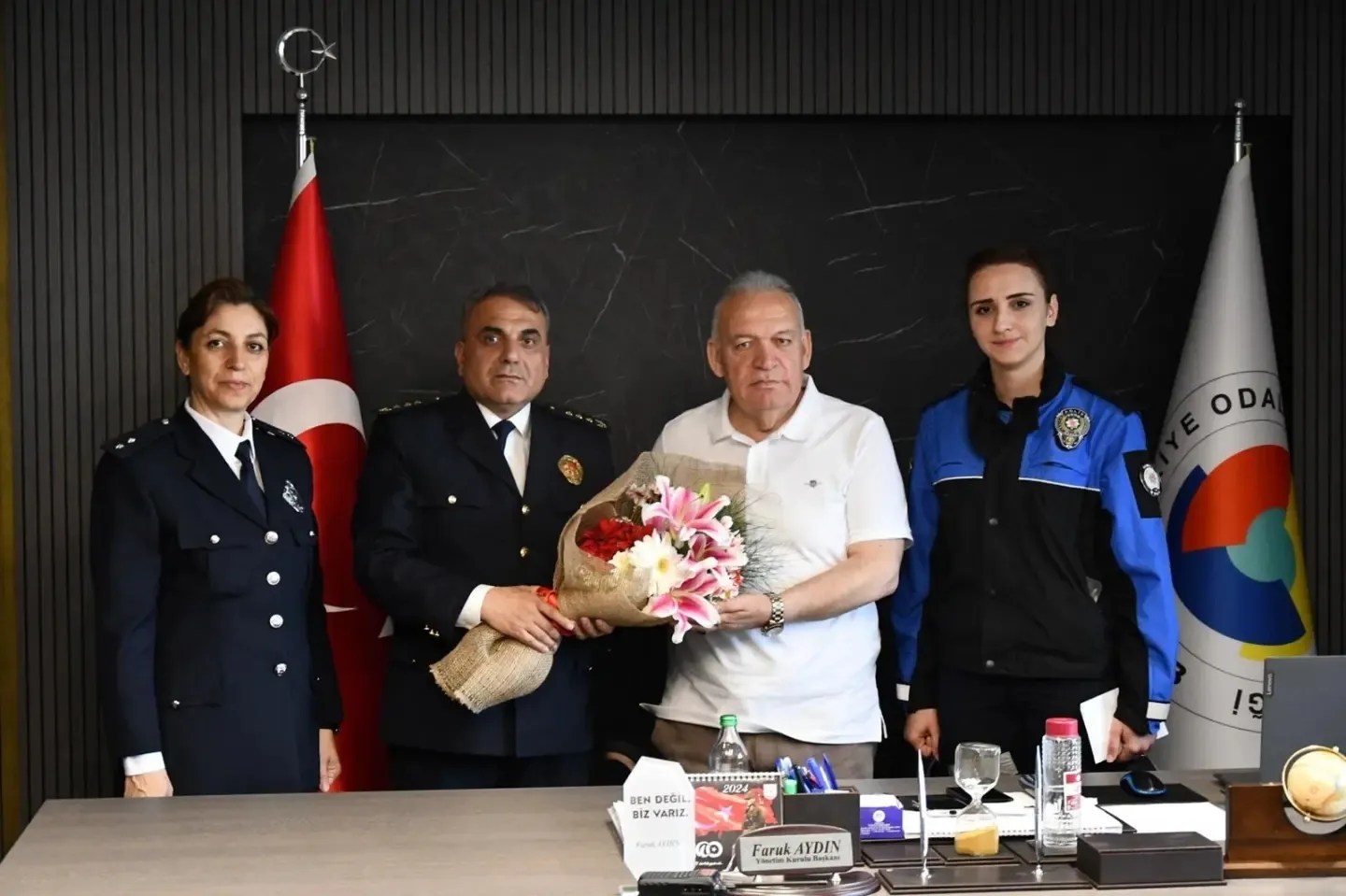 Turgutlu Ticaret ve Sanayi Odası (TUTSO) yönetim kurulu Başkanı Faruk Aydın'ı, İlçe Emniyet Müdürlüğü personeli ziyaret etti.