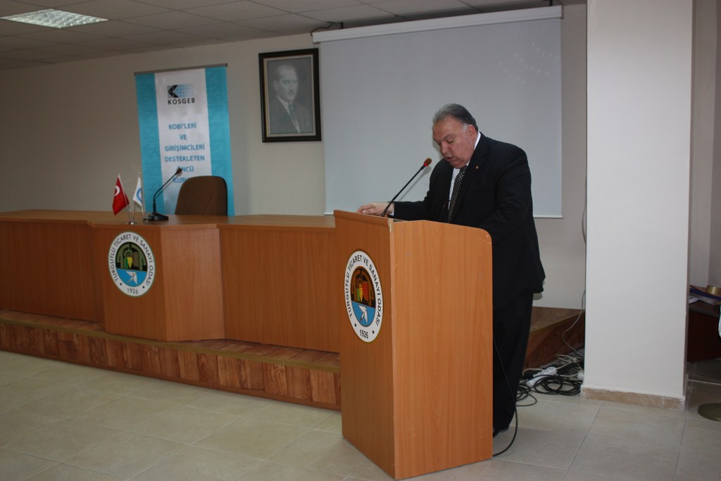 Törenin açılış konuşmasını yapan Yönetim Kurulu Başkanı Faruk Aydın, “Odamızın KOSGEB’ ile ortaklaşa düzenledikleri Uygulamalı Girişimcilik Eğitiminin sekizincisini 26 Eylül 2013 tarihinde tamamlamış bulunmaktayız. Bugün Uygulamalı Girişimcilik Eğitimini başarı ile tamamlayan kişilere sertifikalarını vermek için bir araya geldik.