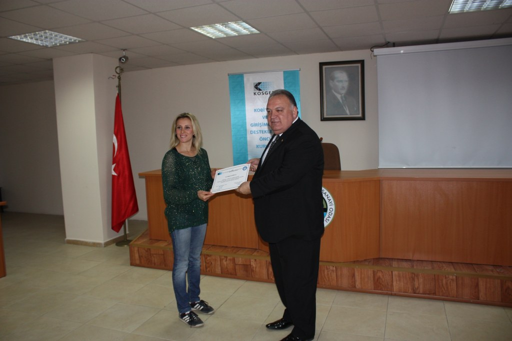 2013 yılı içerisinde 3 , toplamda sekizincisini düzenlediğimiz Uygulamalı Girişimcilik Eğitimleri sonunda 230 kişi KOSGEB destekli iş yeri açma hakkını kazandılar. KOSGEB’e iş planını sunacak olan 27 girişimcimiz daha ‘Yeni Girişimci Desteğinden iş planları KOSGEB tarafından onaylandığı takdirde yararlanabilecekler. Amacımız yöremizdeki girişimci sayısı arttırmaktır. Proje hazırlama kültürünü de yaygınlaştırmalıyız. Burada aldığınız eğitimin size çok faydası olacaktır. Sertifika alacak tüm arkadaşlara iş yaşamlarında başarılar diliyorum.” dedi.