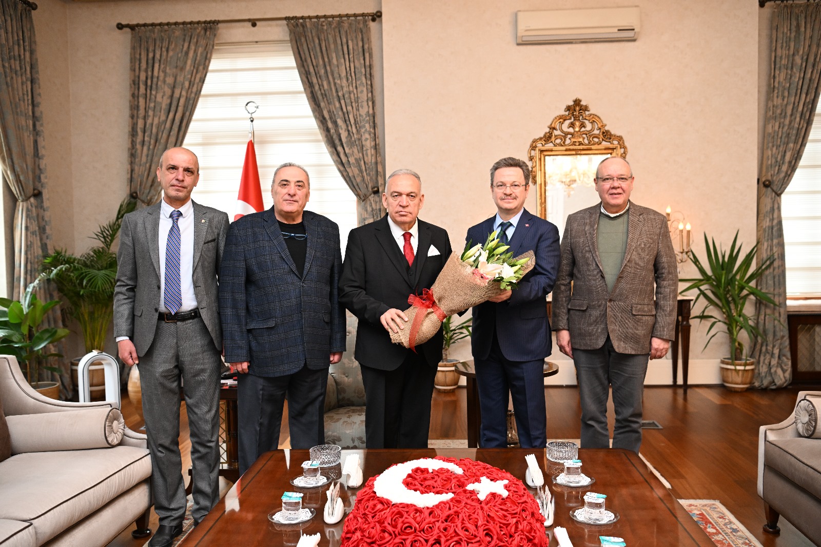 Turgutlu Ticaret ve Sanayi Odası Yönetim Kurulu Başkanı Faruk Aydın, Yönetim Kurulu Başkan Yardımcıları Nazım Balyapan ve Mustafa Edip Artun ile TUTSO Genel Sekreteri Nevzat Avcı, Manisa Valisi Enver Ünlü'yü makamında ziyaret edip, hayırlı olsun dileklerini iletti.