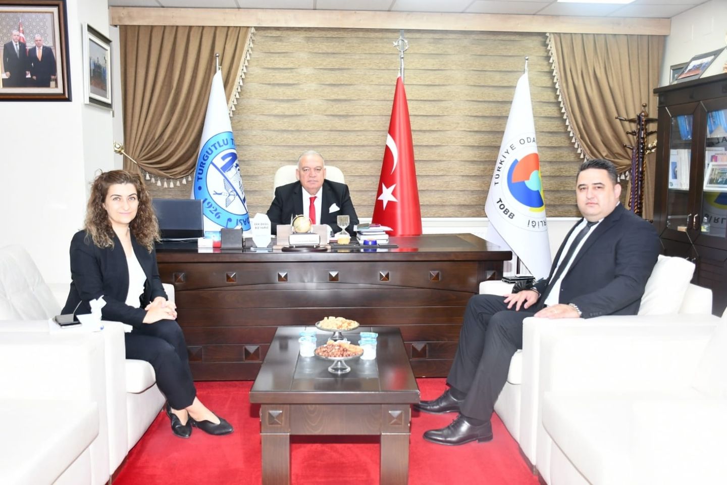 Vakıfbank Turgutlu Şube Müdürü İbrahim Menekşe ile KOBİ Portföy Yöneticisi Seda Özder, Turgutlu Ticaret ve Sanayi Odası (TUTSO) Yönetim Kurulu Başkanı Faruk Aydın'ı ziyaret etti.